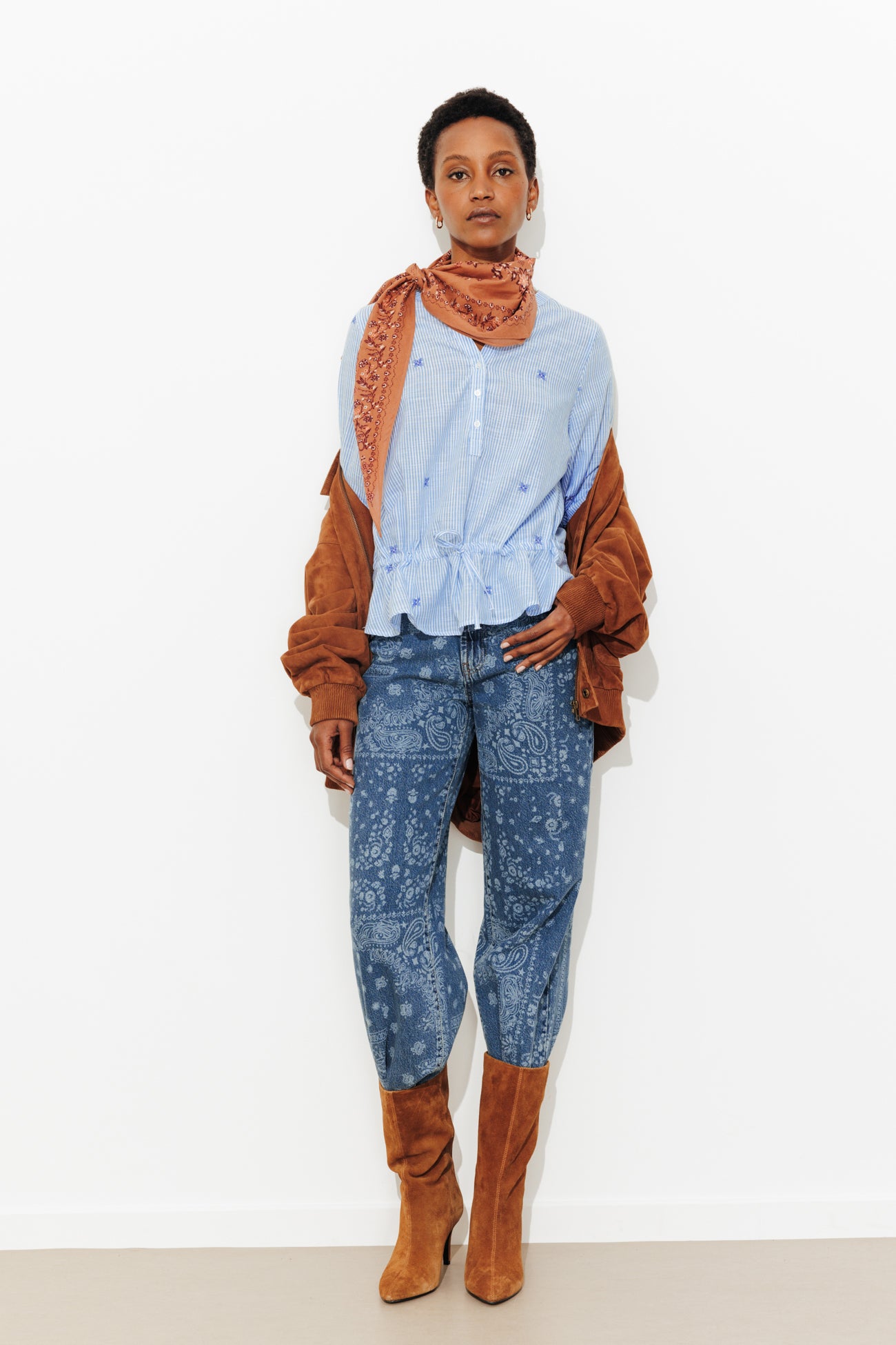 Bestickte gestreifte Bluse - Marineblau gestreift