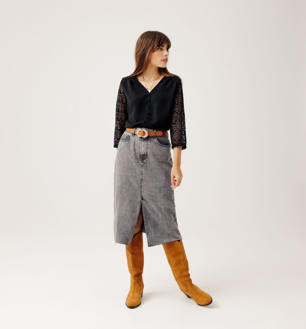 Mit Spitze wird's gleich noch charmanter! Diese feminine Bluse passt wunderbar zu einer Jeans für den lässig-entspannten Look. Upgraden Sie sie mit einer eleganten Hose oder einem geraden Rock für entsprechende Anlässe. Das Modell mit V-Ausschnitt und Knopfleiste hat Ärmel in 3/4-Länge und einen leicht abgerundeten Saum.