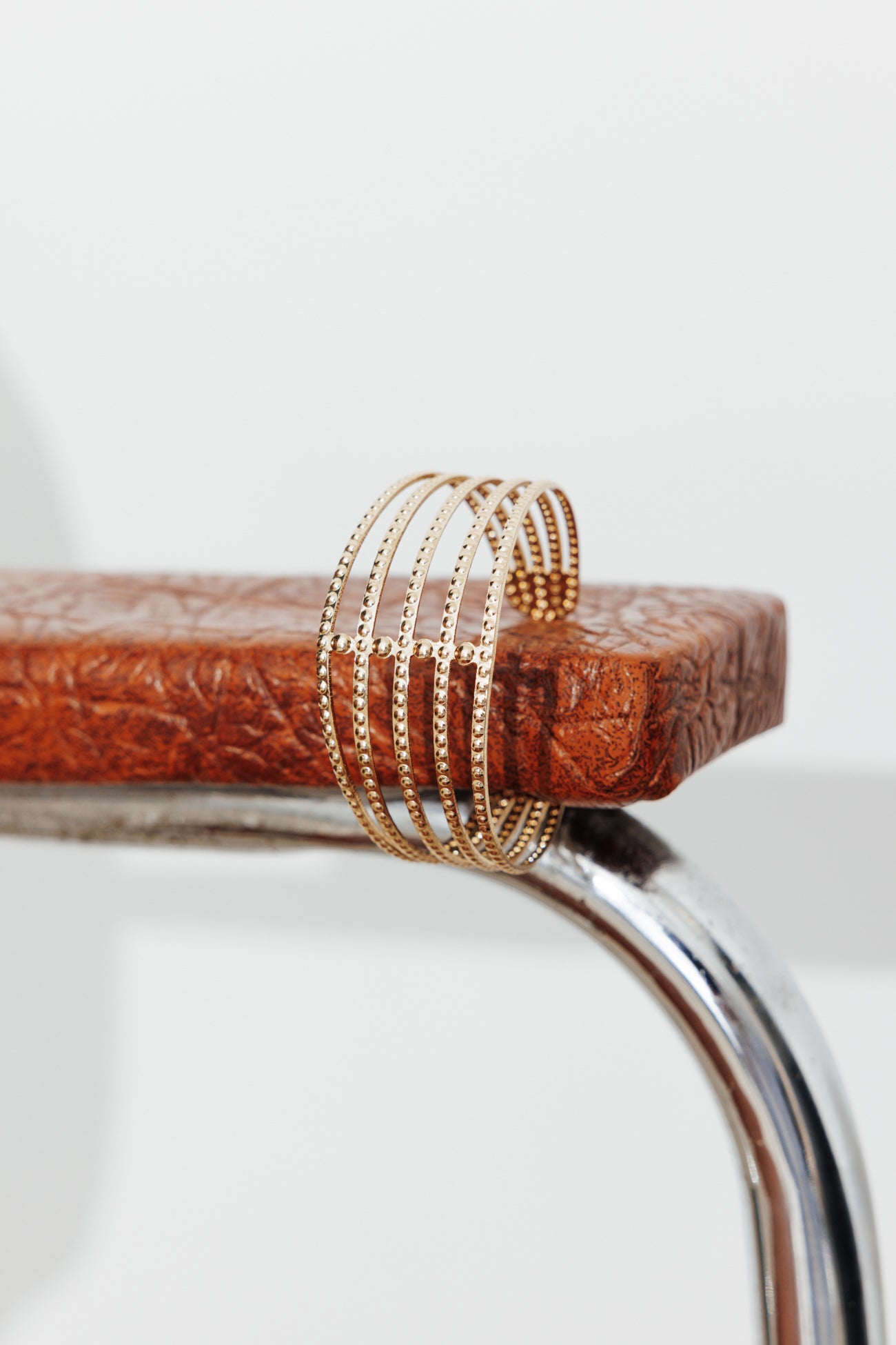 Ein breiter Armreif gehört in jede Schmuckschatulle! Er zaubert modischen Glanz und Eleganz ins Outfit, bei Tag und bei Nacht, zu jeder Jahreszeit! Tragen Sie ihn zum langen Kleid, zum Trägertop oder zu einem Hemd mit hochgekrempelten Ärmeln. Das vierreihige Modell mit Reliefkügelchen kommt in Einheitsgröße. Eine schöne Geschenkidee.
