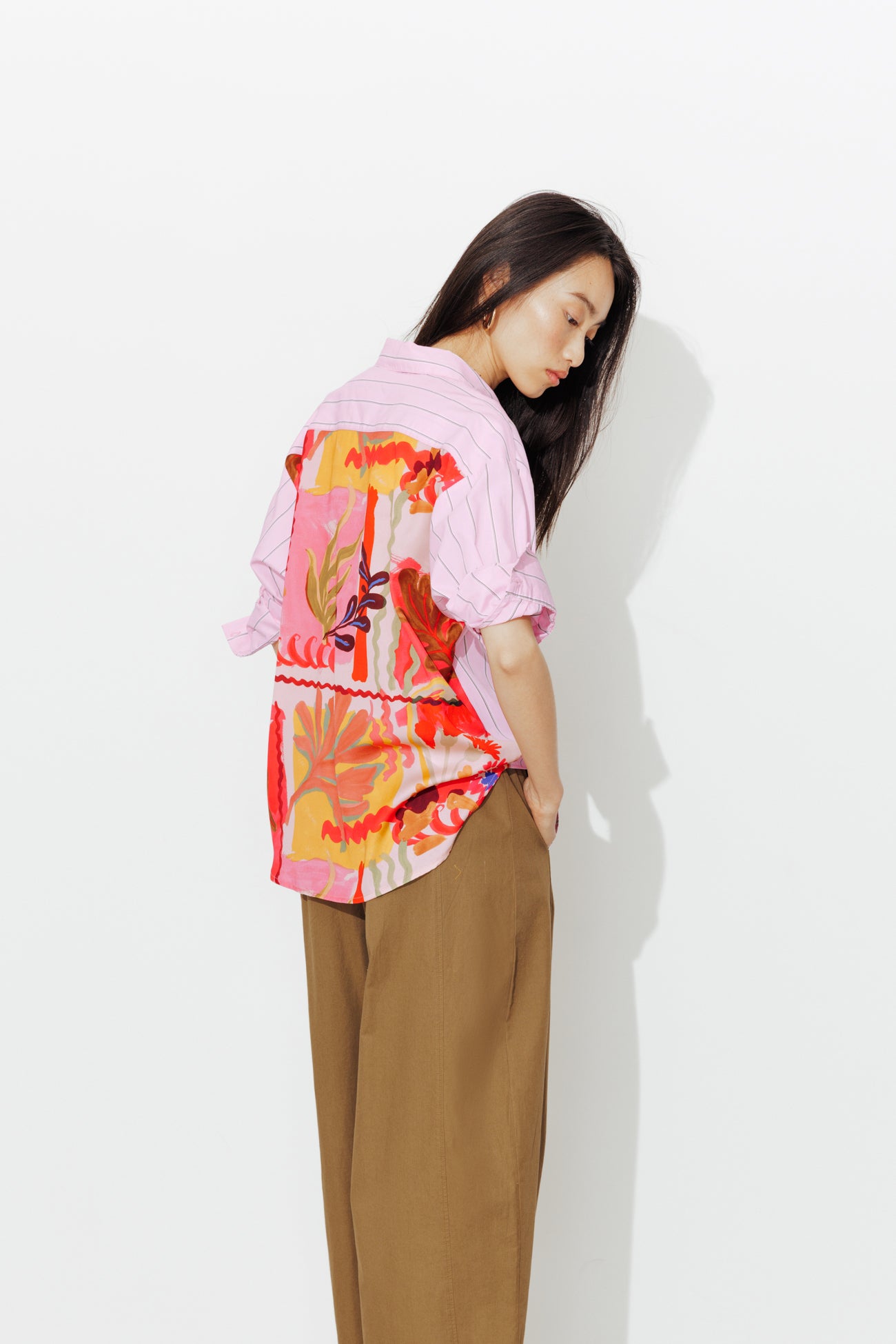 Gestreiftes Oversize-Hemd - Rosa gestreift