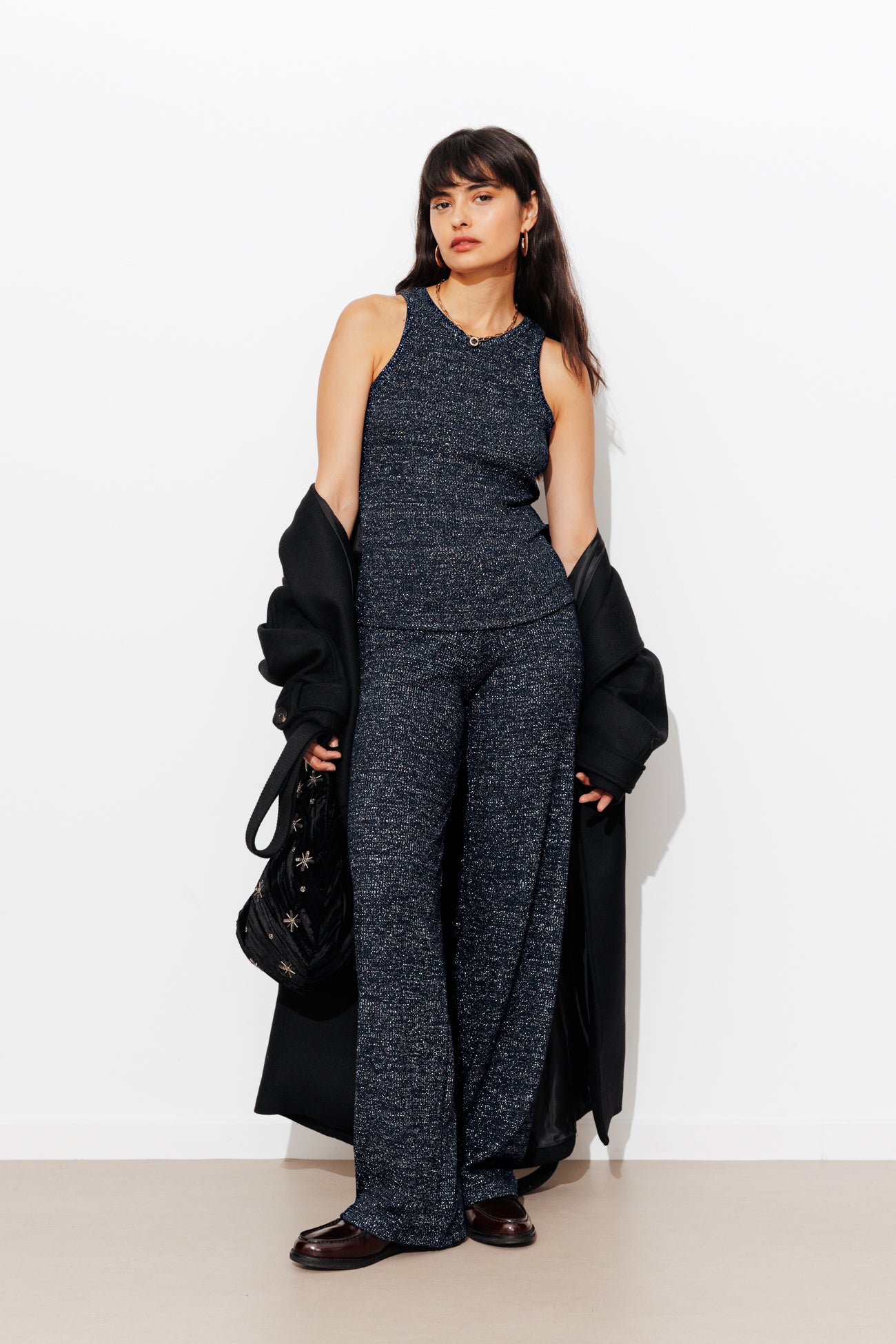 Sportlich unterwegs oder in Partylaune: dieses glitzernde Trägertop aus Rippjersey ist immer dabei! Dieses Modell im Stil eines eng anliegenden Tank-Tops hat einen abgerundeten Ausschnitt vorn und hinten sowie US-Ärmel mit Ziernähten an den eingefassten Kanten und einen geraden Saum. Enthält recycelte Fasern.