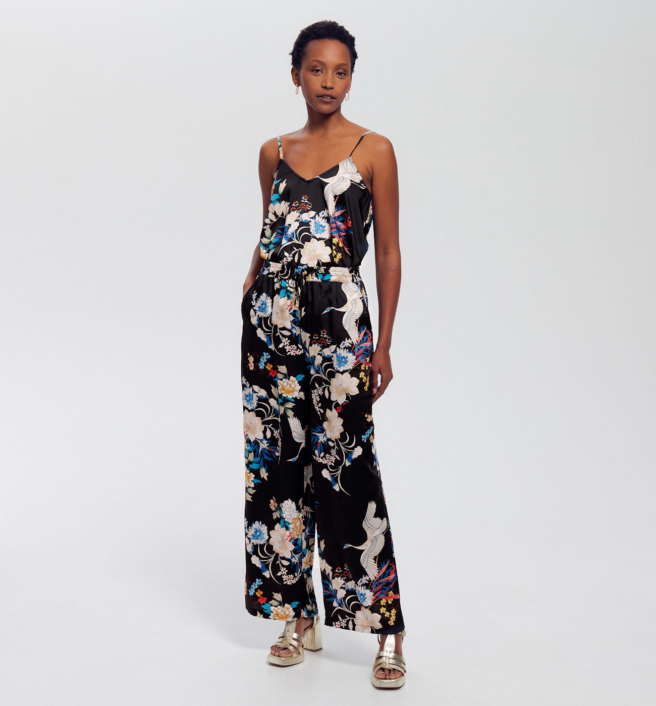 Nightwear-Style für den Tag! Traditionell japanisch inspirierte Muster und seidiger Stoff begeistern uns für diese tolle Hose. Das Modell mit weitem Bein hat eine elastische gesmokte Taille mit Kordelzug und 2 Taschen. Dieser Artikel enthält recycelte Fasern aus gesammelten Textilien oder Kunststoff, die recycelten Fasern werden in Spinnereien verarbeitet und so zu neuen Kleidungsstücken.