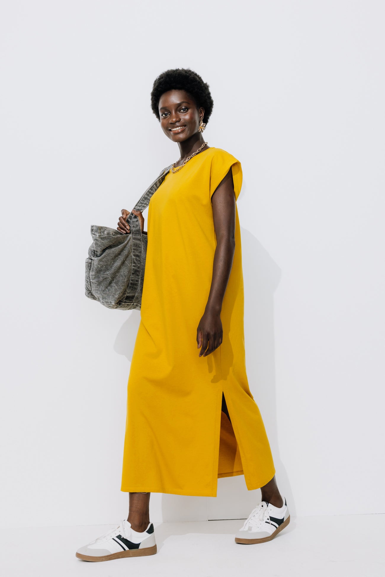 Langes T-Shirt-Kleid - Ocker