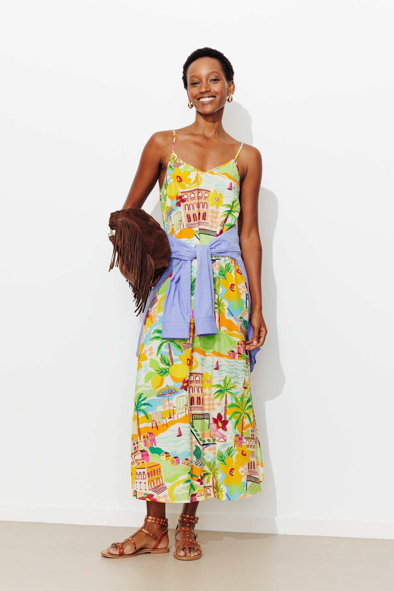 Langes Trägerkleid - Bunt gemustert