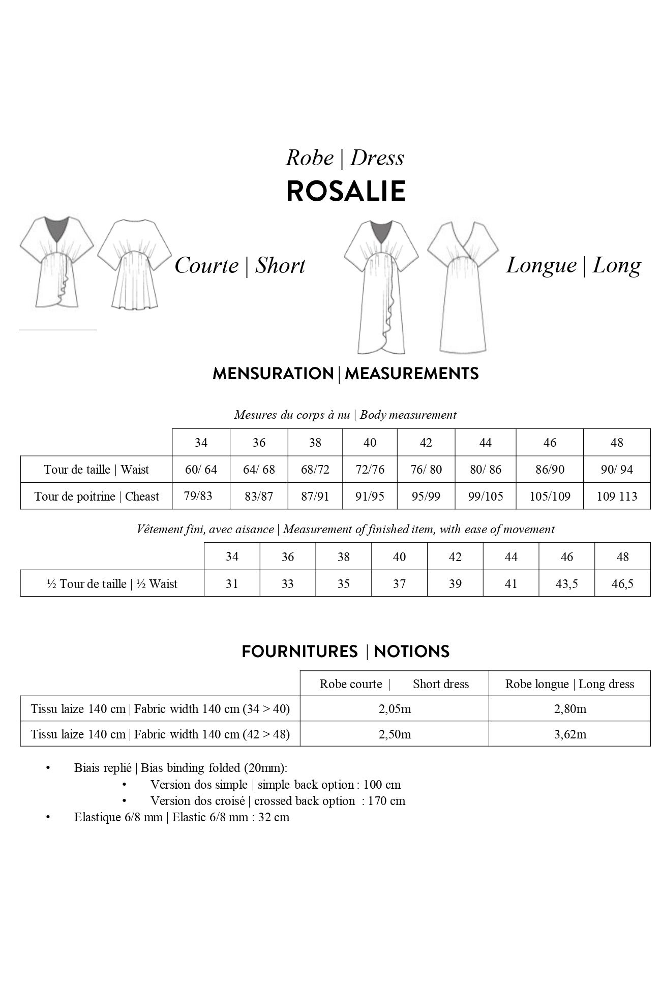 Das Kleid ROSALIE ist ein echter Hingucker: V-Ausschnitt, Kimonoärmel, elastische Empiretaille, überlappende Stoffbahnen vorn. Mit diesem Schnittmuster entscheiden Sie selbst: Mini- oder Midilänge, langer oder kurzer Arm, klassischer oder gekreuzter Rücken... Auch durch die Stoffauswahl setzen Sie eigene Akzente. Für Größe 34-48 geeignet. Schwierigkeitslevel 1 von 4. Mit Youtube-Tutorial.