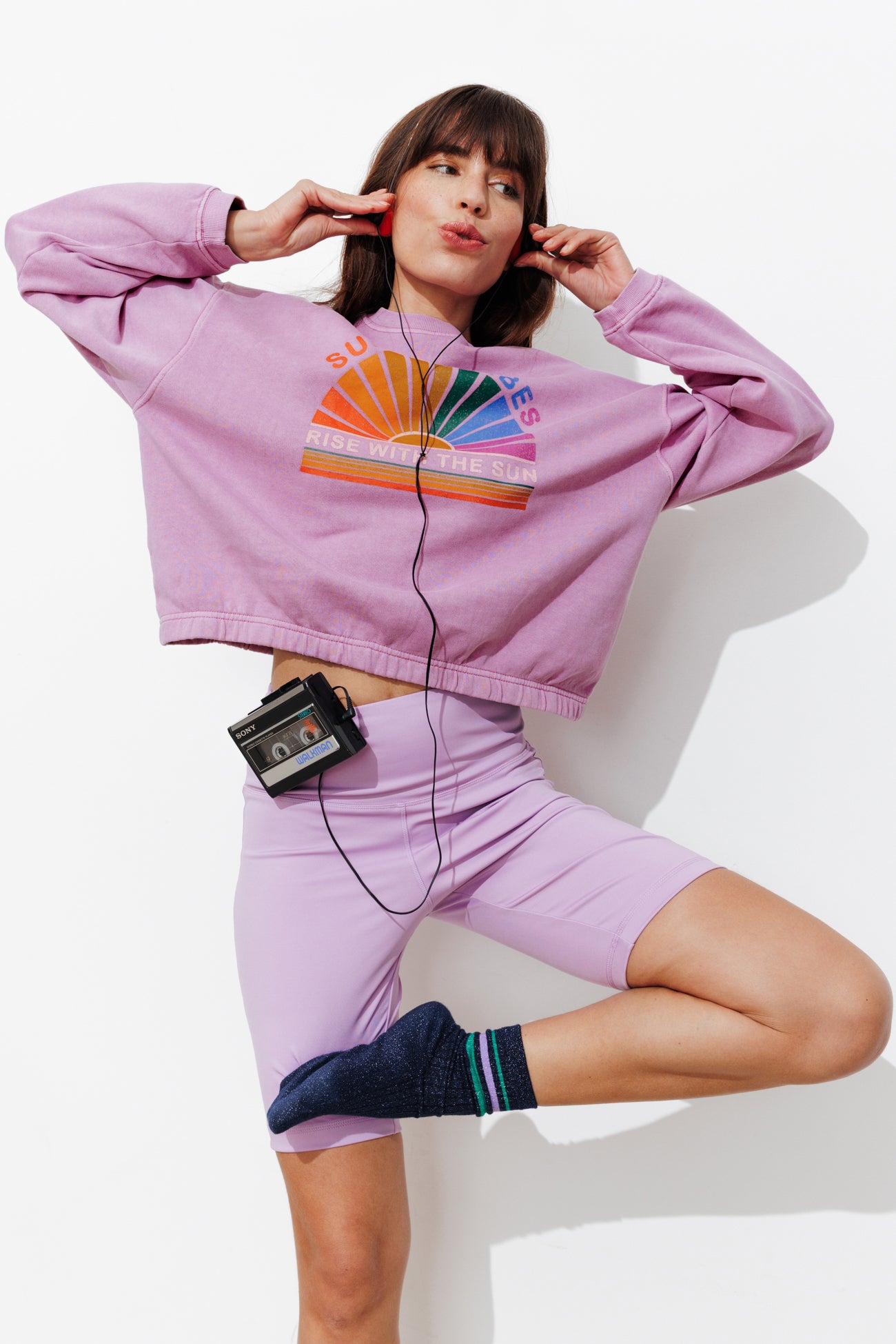 Sport-Capsule. Ein bequemes Sweatshirt aus weichem Molton für kuschlige Momente vor, während und nach dem Training. Das Modell mit besonderer Färbetechnik und Statementprint "Summer Vibes" in Vintage-Optik vorn hat einen runden Kragen, lange Ärmel, einen elastischen Saum und Rippbündchen. Enthält Baumwolle aus biologischem Anbau, die ohne Pestizide, Kunstdünger oder Gentechnologie angebaut wird.