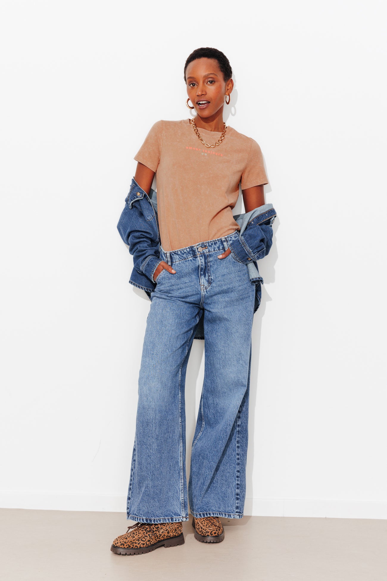 T-Shirt "Amour Toujours" - Ecru bedruckt
