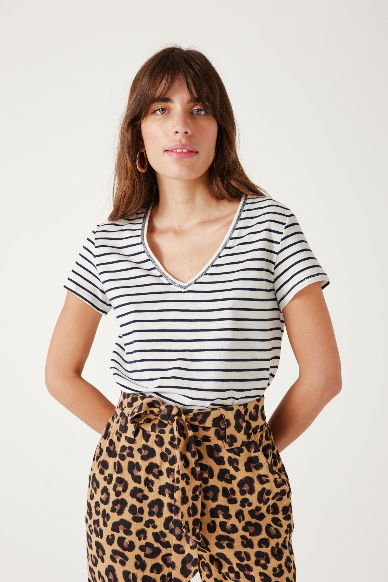 T-Shirt mit V-Ausschnitt - Marineblau gestreift