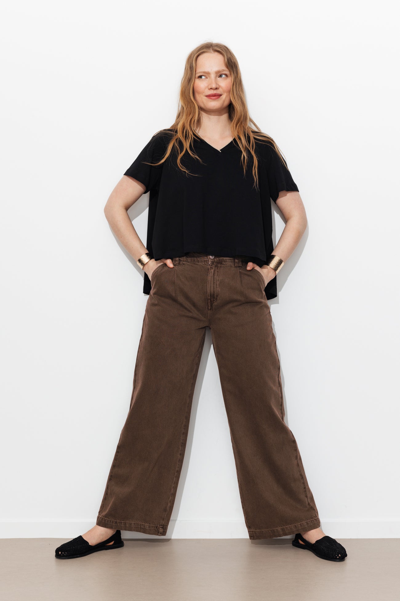 Weite High Waist-Hose - Kastanienbraun