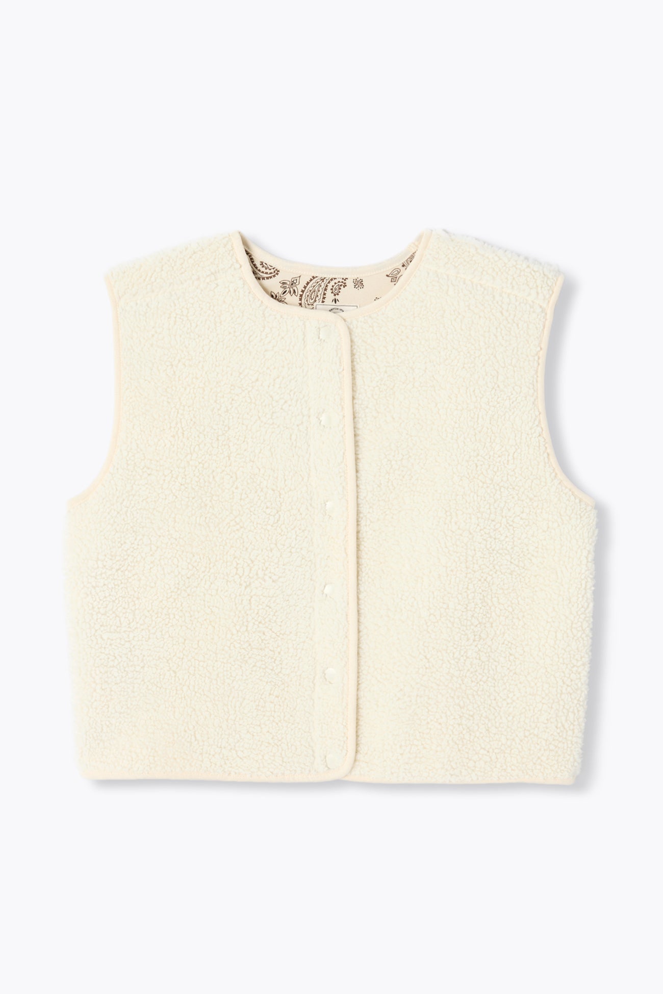 Kuschelfleece auf der einen Seite, gemusterter softer Jerseystoff auf der anderen. Für drinnen & draußen. PALOMA, die Wendeweste ist ein Modestar in jeder Saison! In mehreren Farben erhältlich. Zum Behalten oder Verschenken. Das Modell ist gerade geschnitten mit Ton in Ton gehaltenen Einfassungen, rundem Kragen, Druckknopfleiste und US-Ärmeln. Enthält recycelte Fasern.